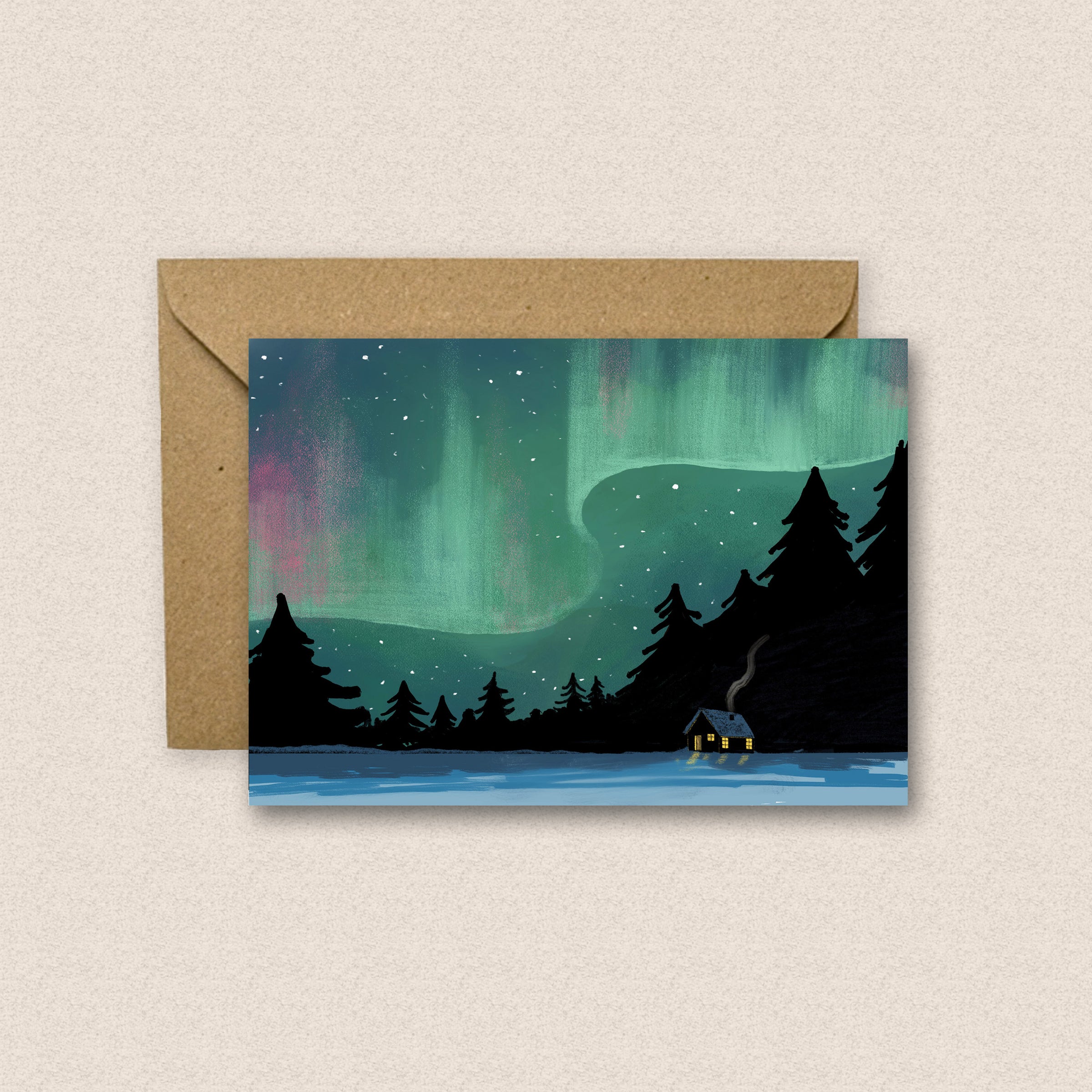 Northern Lights Cabin Everyday Greetings Card