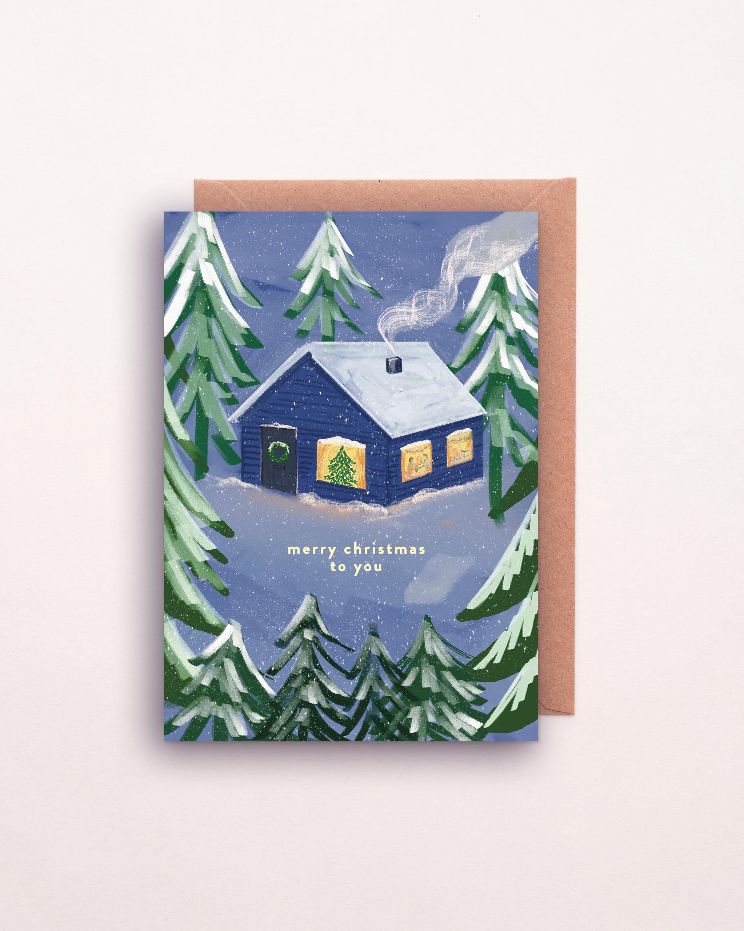 Cosy Cabin Christmas Card | Illustrated Christmas Card