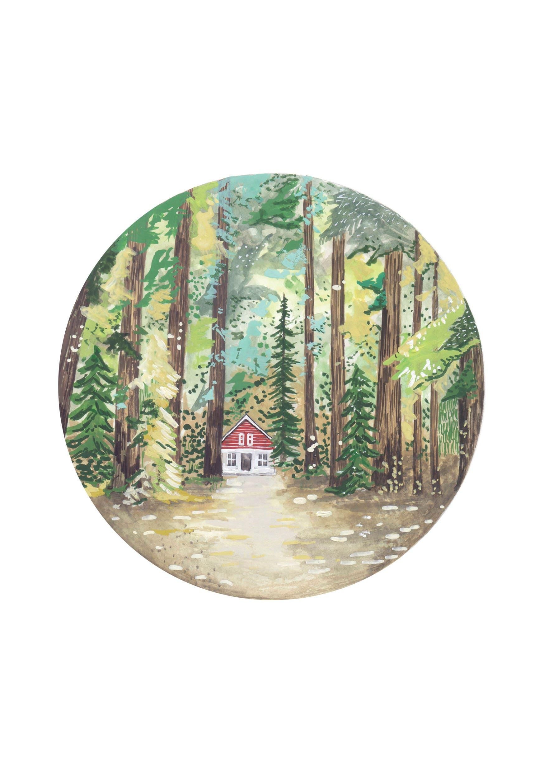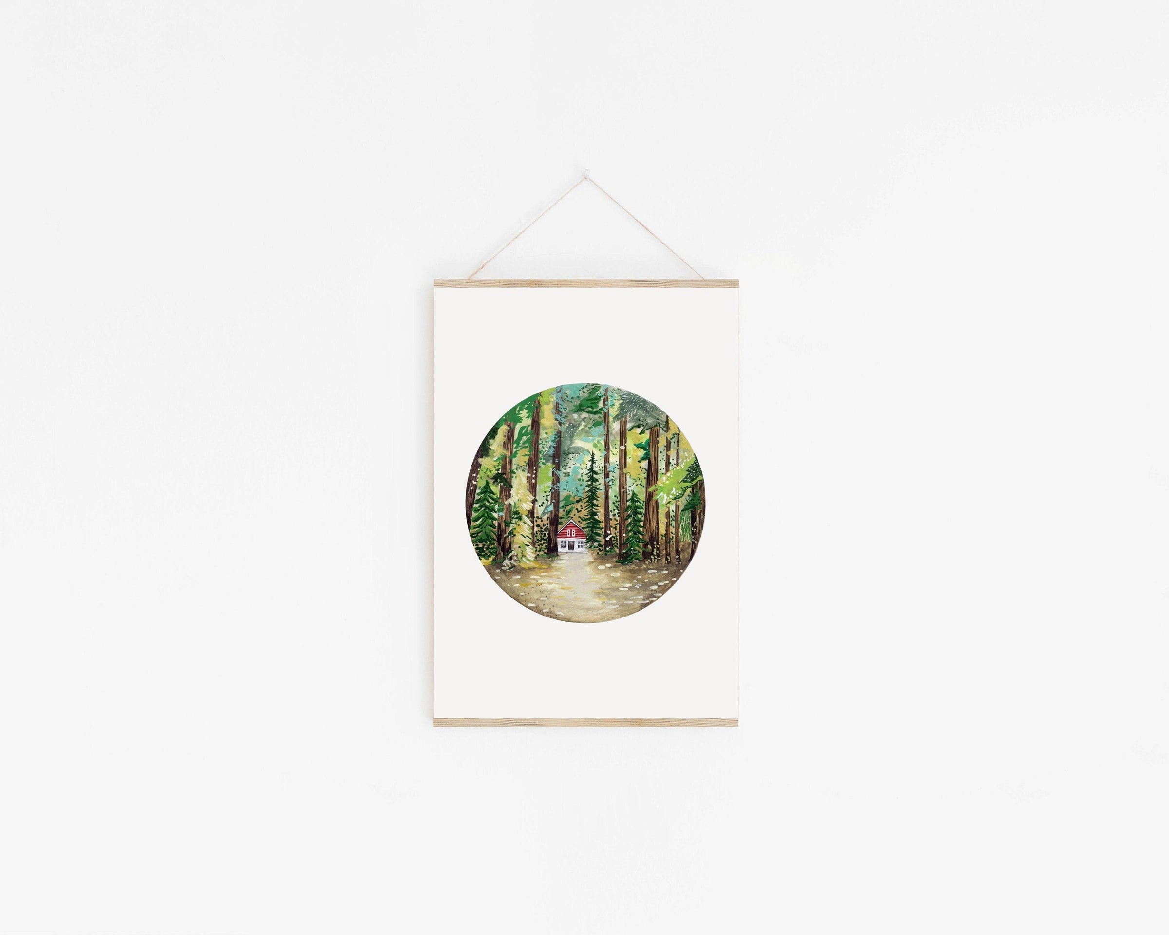 Detailed digital art print of my autumnal cabin scene, originally created in gouache.