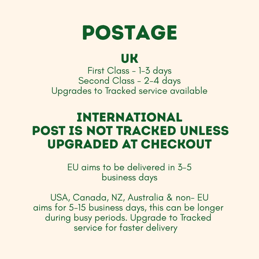 A4 (210 x 297mm / 11.93 x 15.98") on textured recycled 300gm cotton paper.