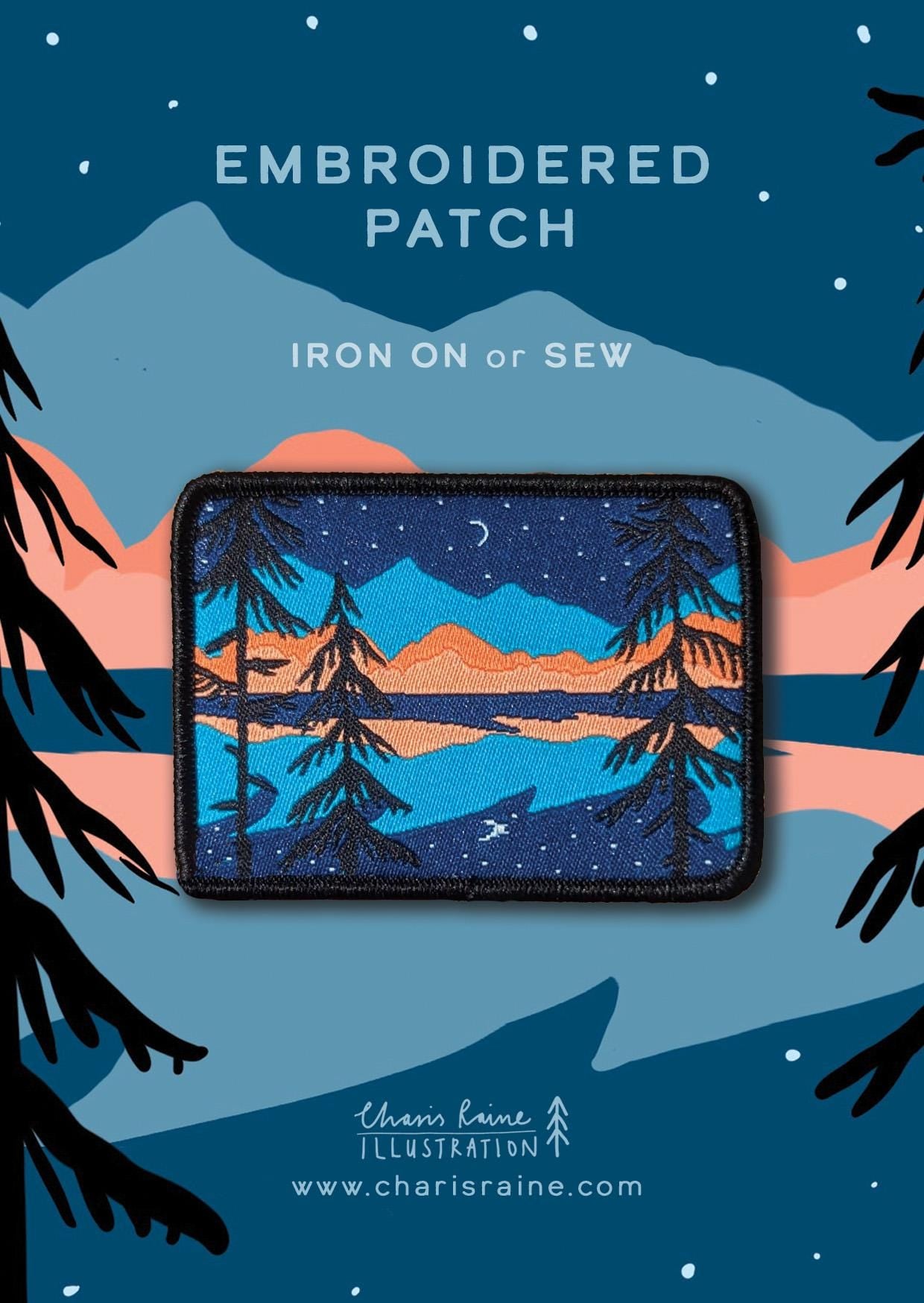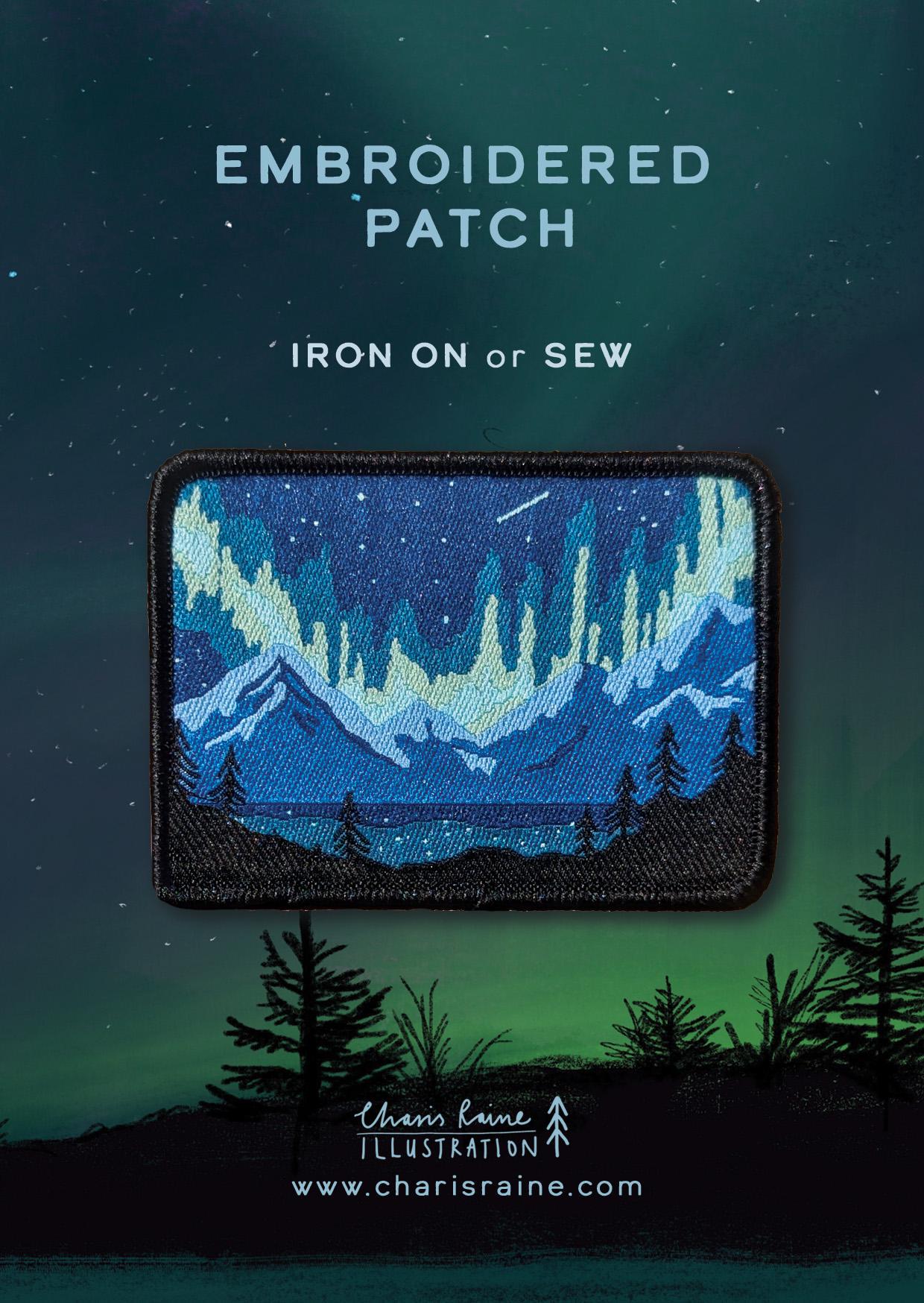 Set of 2 Iron on Patches - Northern Lights and Forest Sunset