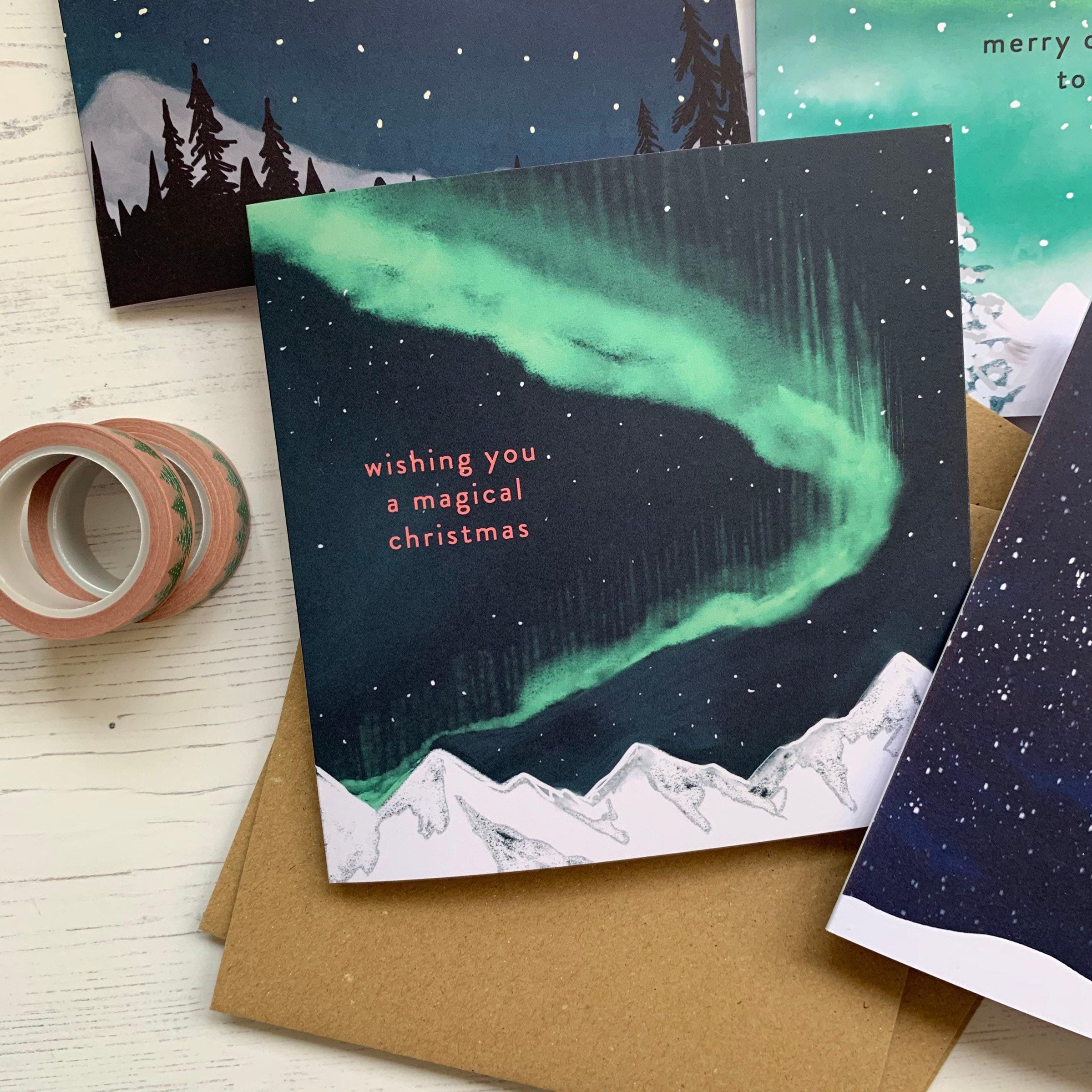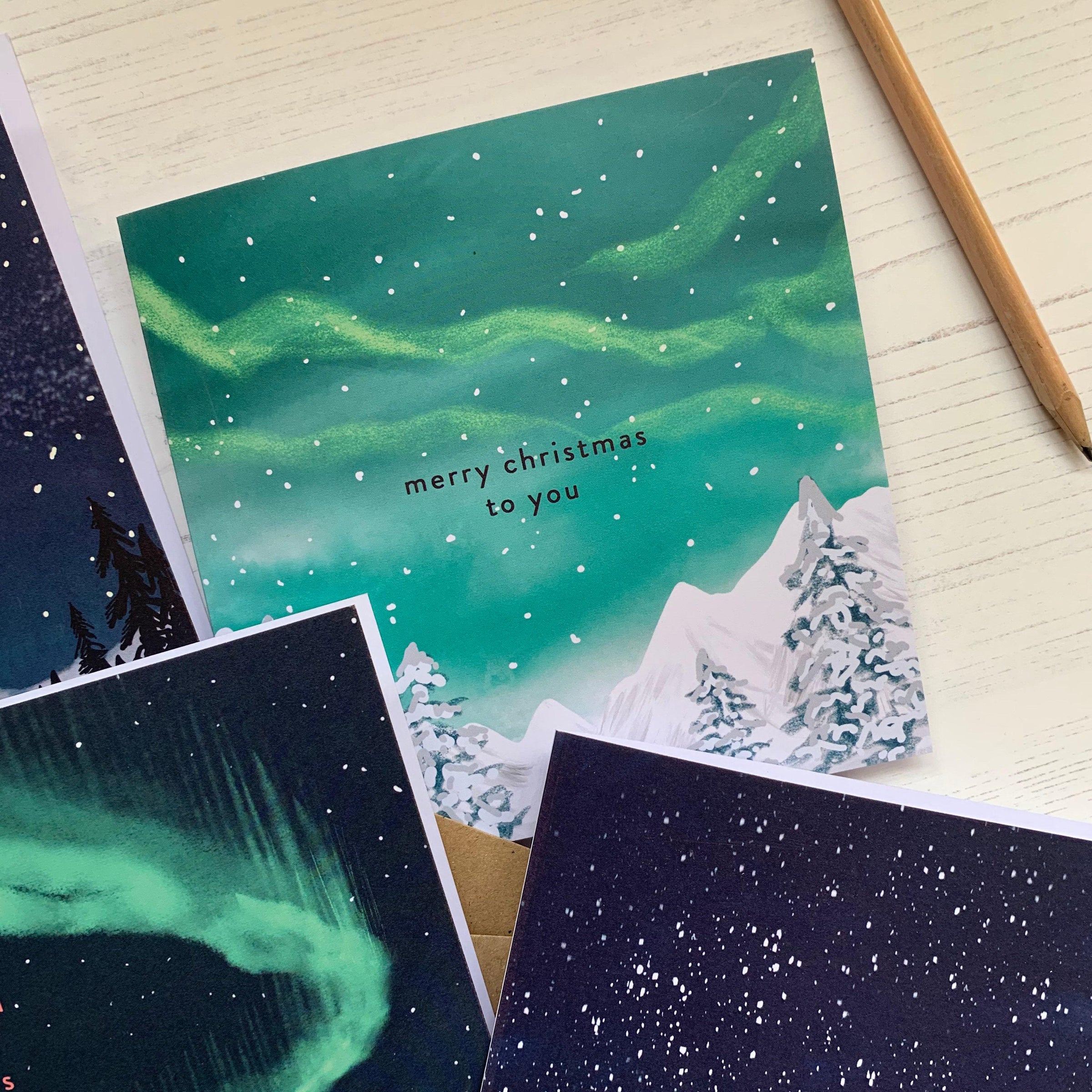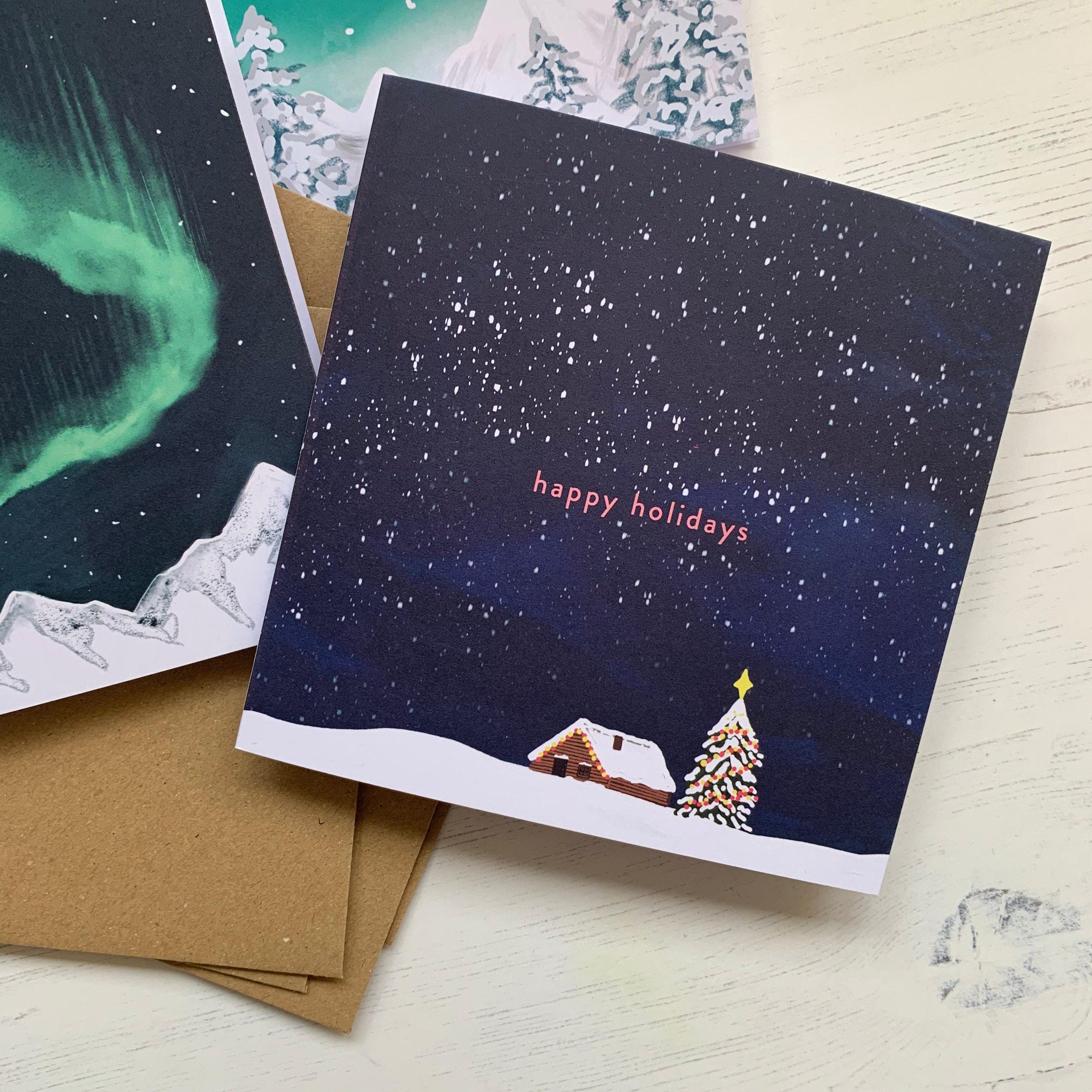 Starry Skies Illustrated Christmas Card Set | Pack of 4